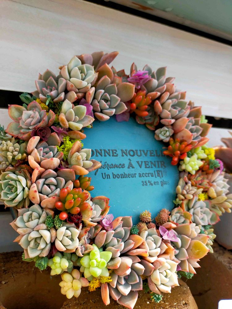 葉挿しっ子のリースを少し手直ししました。ぎゅうぎゅう😆
