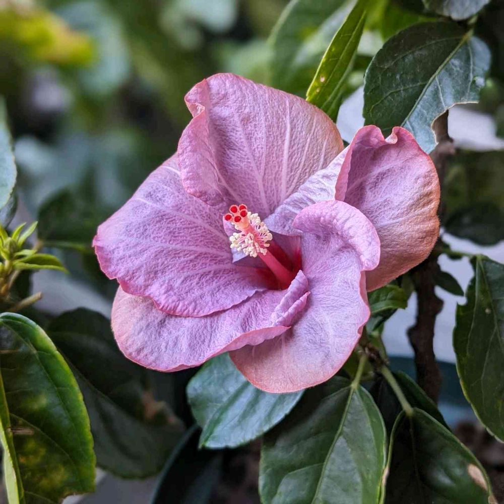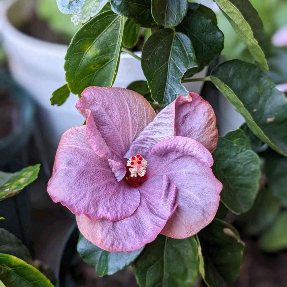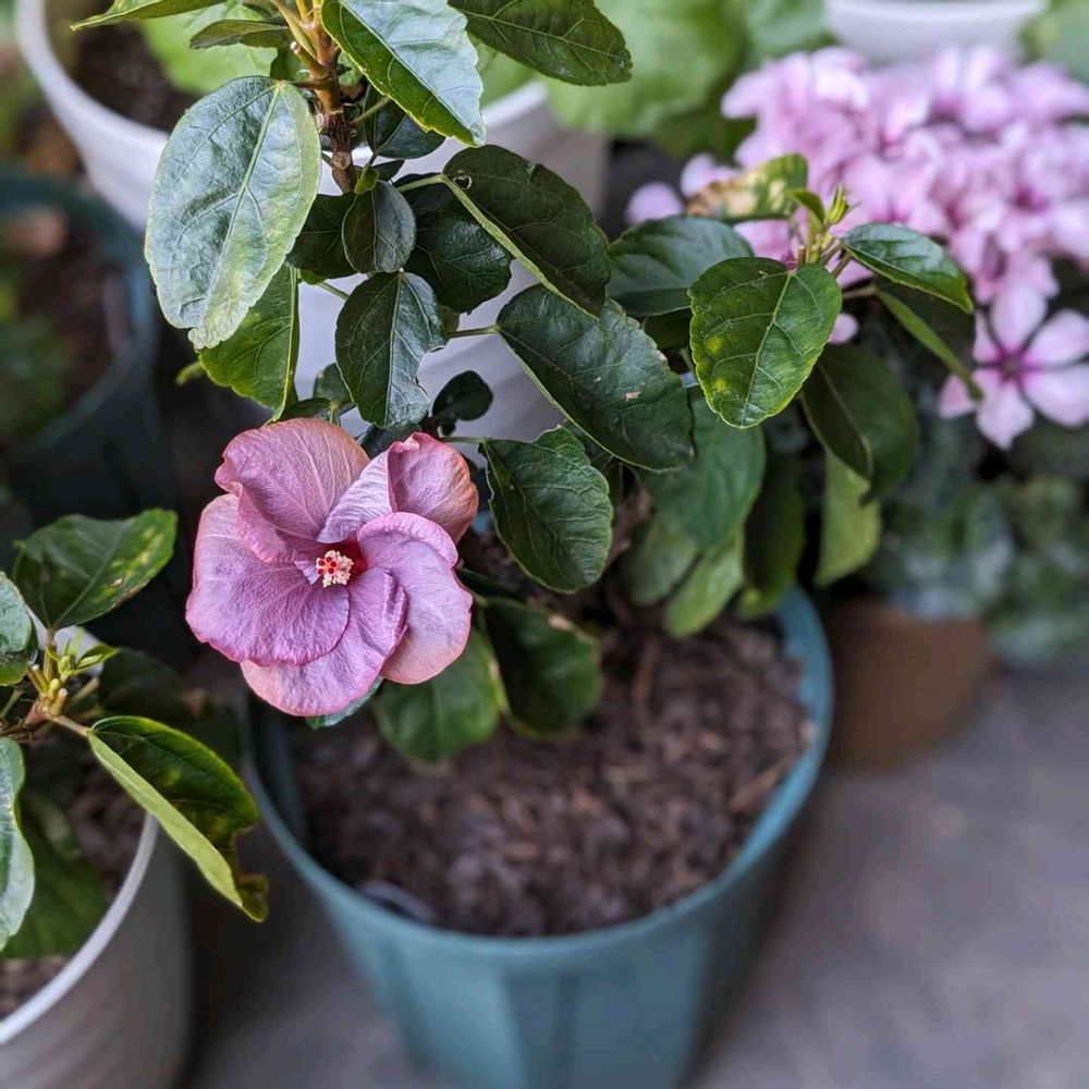 うちもハイビスカス、屋外軒下で冬越中です。🌿が縮れてますが、、一つは新芽も見えてます。