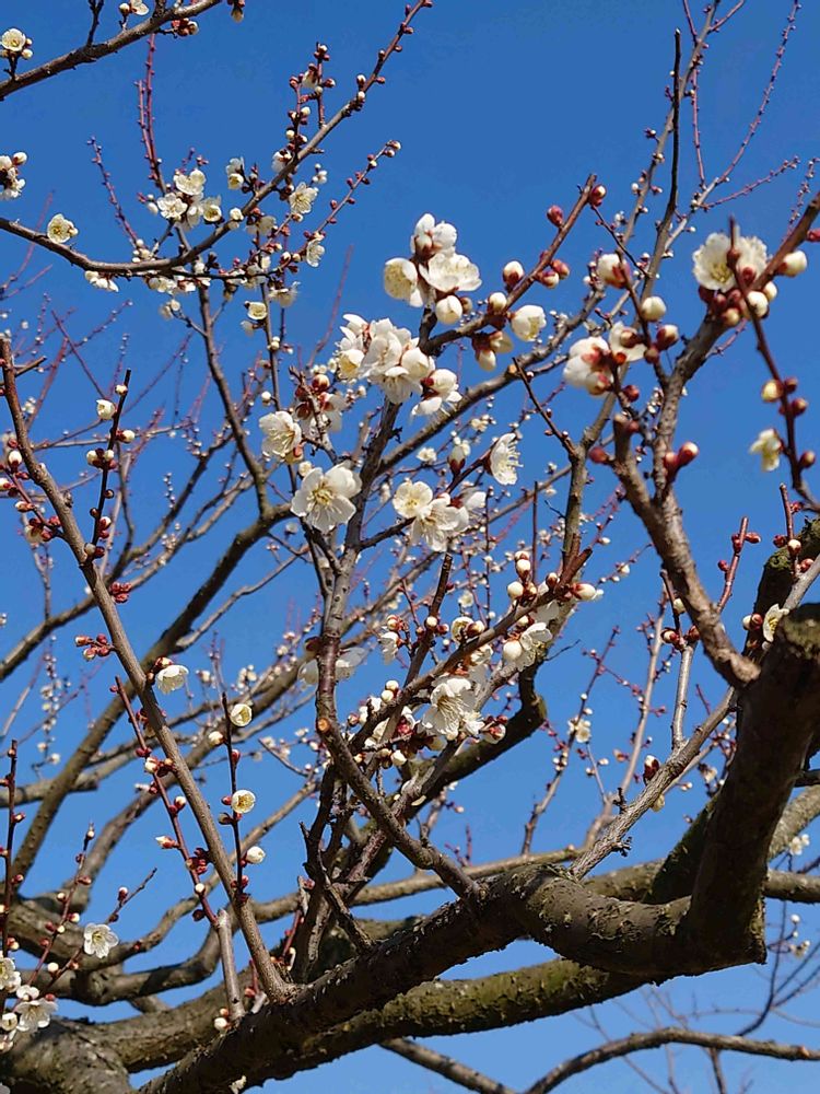 青空に白梅が映えて綺麗ですね🤍