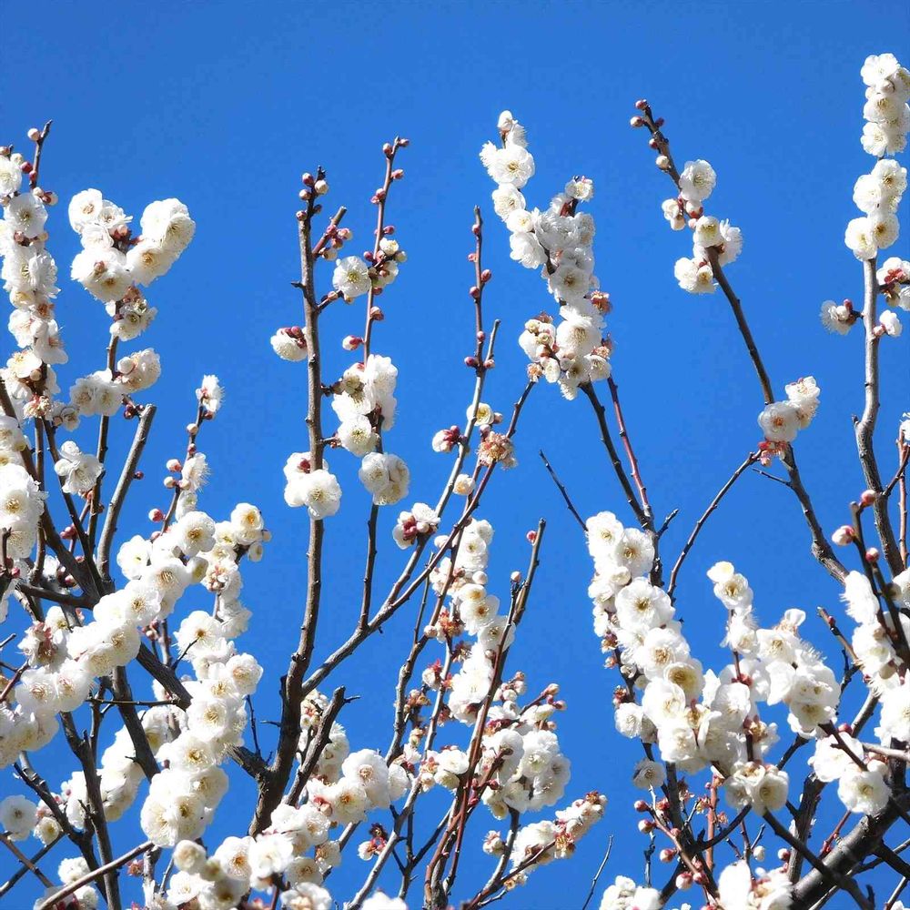 早咲きの品種で、白いウメの花🤍がきれいです✨