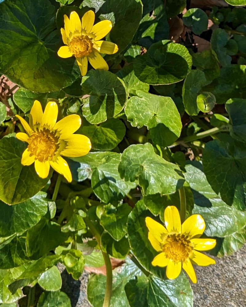 街路樹の根元にヒメリュウキンカが咲き始めました。自転車だと通り過ぎてましたが写ん歩をして見つけました。