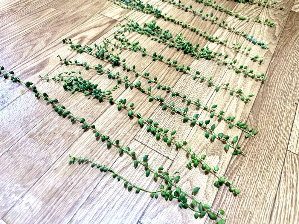 伸び伸びのセネキオ『エンジェルティアーズ』斑入りの『ピーチネックレス』です。