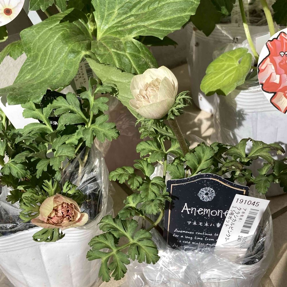 アネモネはまだ蕾だから花色は不明だけど、この感じだと薄ーいピンクかな?