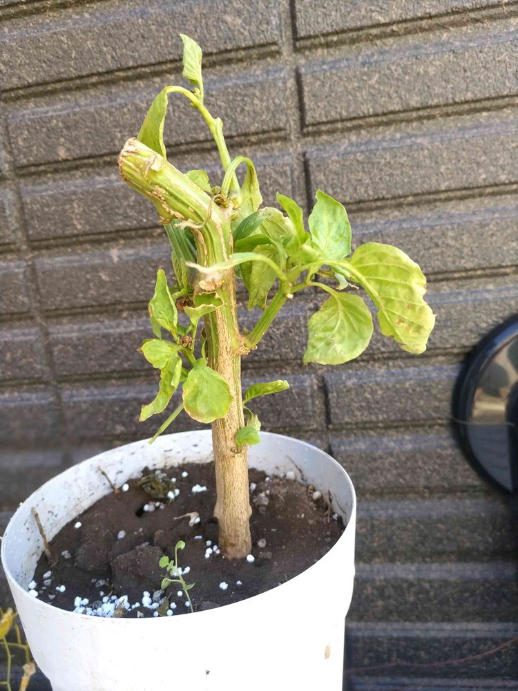 昨年片付けようとしたピーマンの苗です。今の状態。果たして実は実るのでしょうか。観察中です。