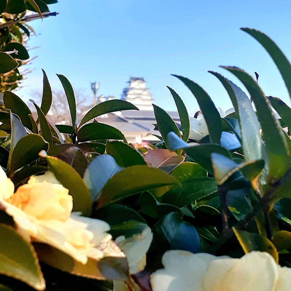 白い山茶花と🏯も