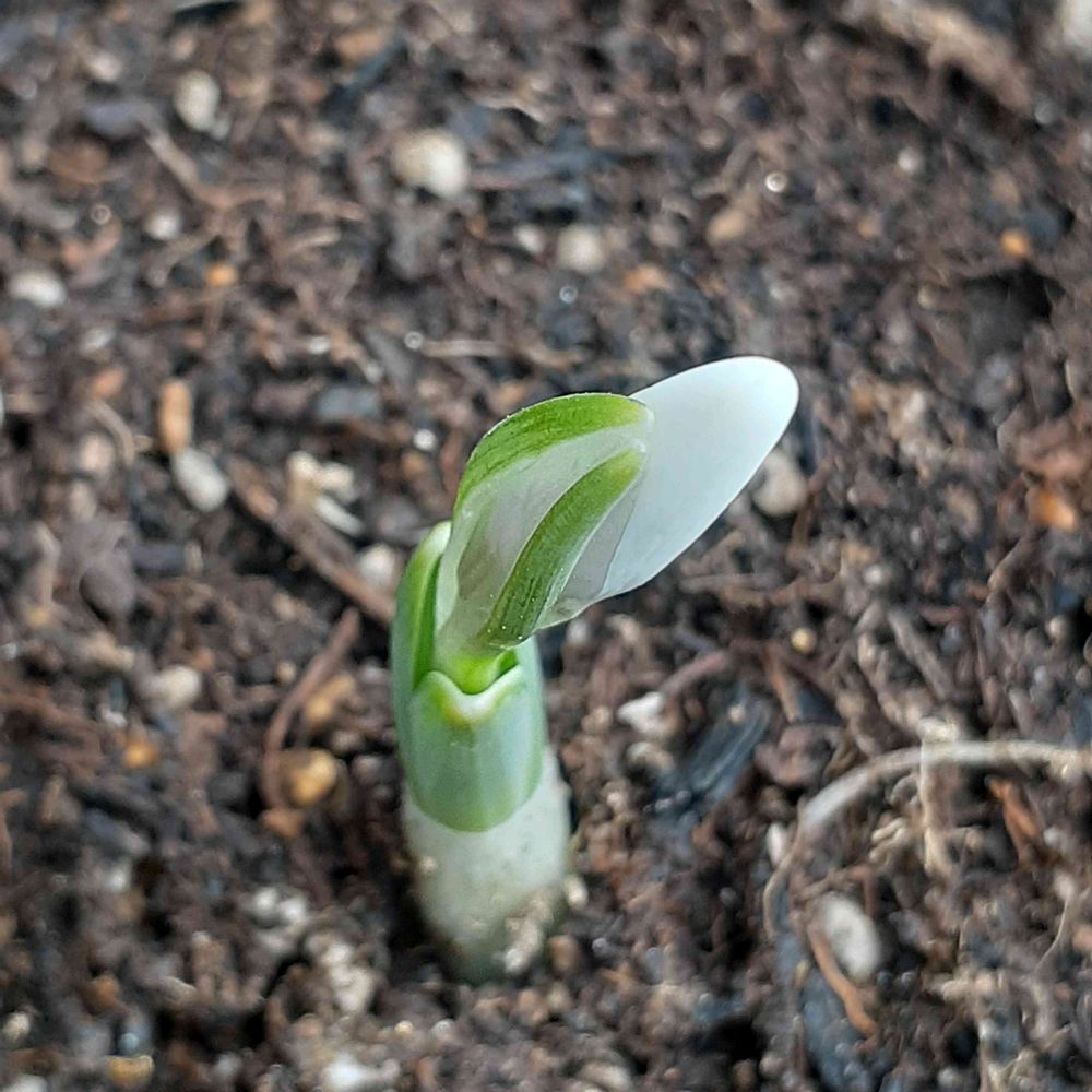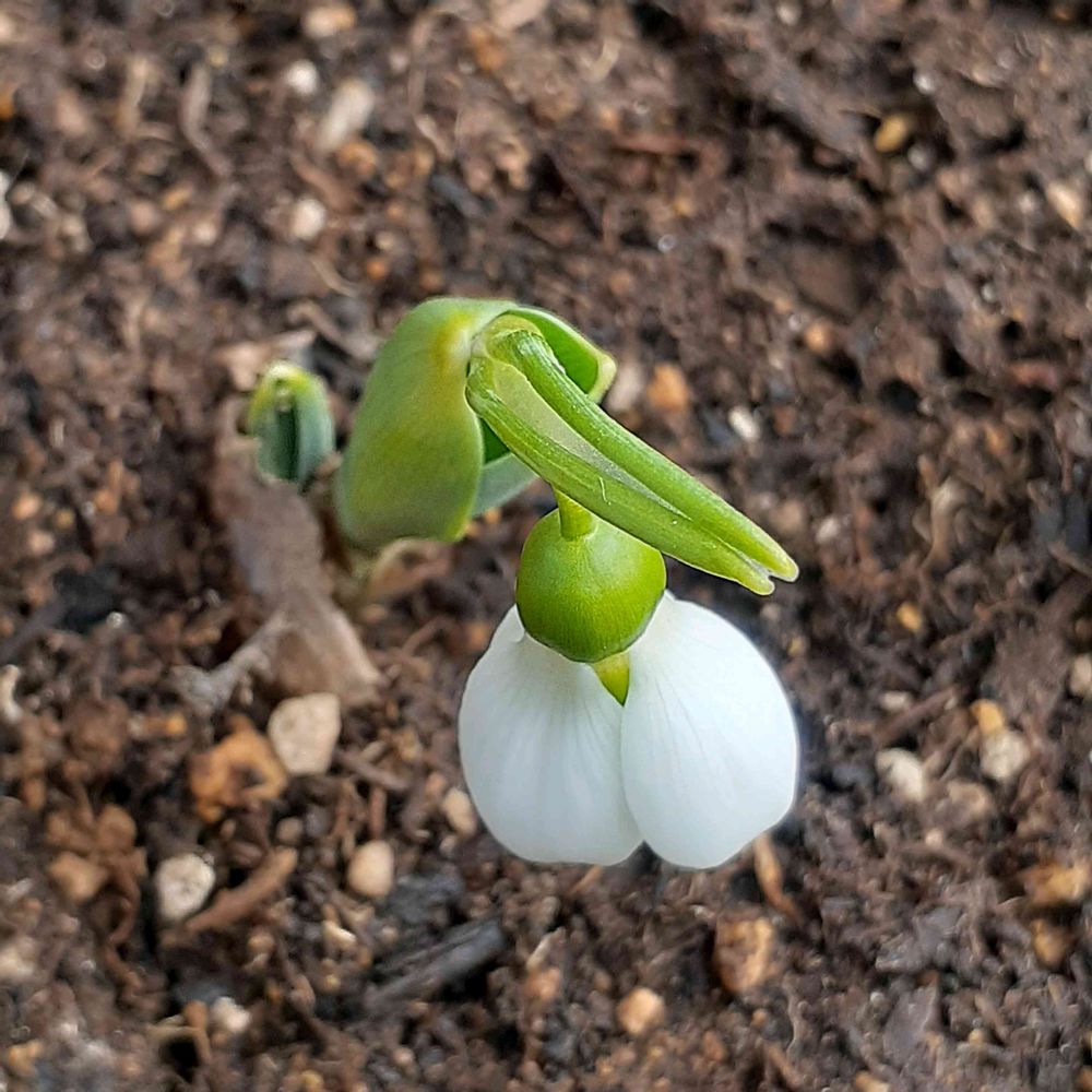 初めてスノードロップの球根を植えて、最初に咲いた子です💚