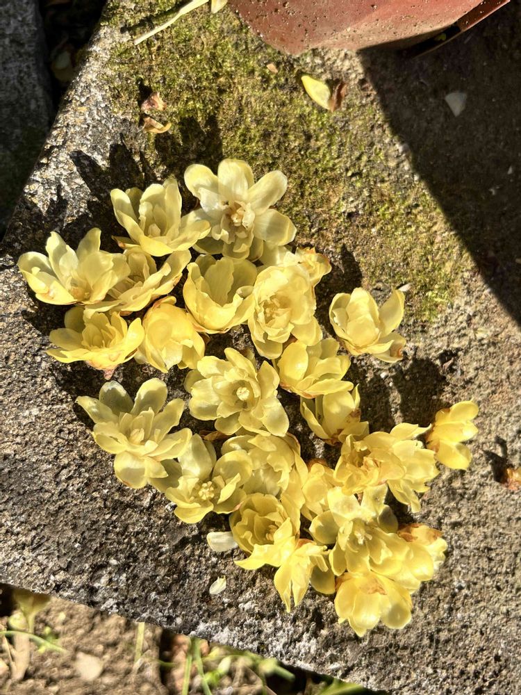 ヒヨドリに落とされるロウバイの花が増えていく😅