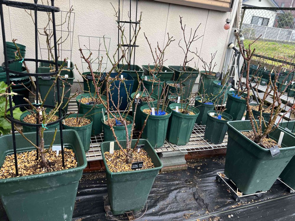 今日ぐらいからぼちぼちと始めます。我が家は鉢バラ46株、地植えバラ20株です。用土は、今年はバラの専用培養土をネットで買いました。今のところ、170リットル分購入しましたが、足らなければ買い増します。薬剤噴霧や塗布もあるので焦っています。
