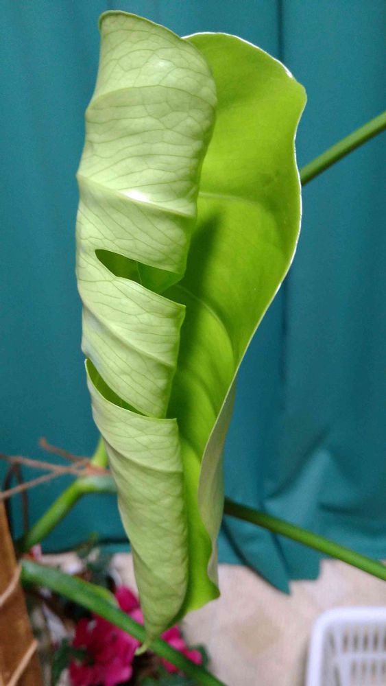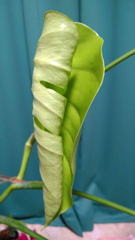 モンステラはどんどん大きくなり、葉も増えますね~我が家では大きな植木鉢に柱を立てました~葉のクリンクリンは可愛い〰️ですよねー🌿🌿🌿