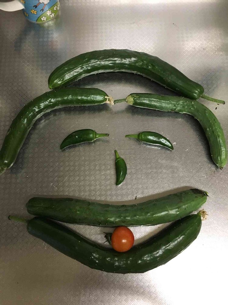 昨日は、台風の後の片付けで忙しくてGSみれなかったけど、どでかい🥒顔癒されます💕