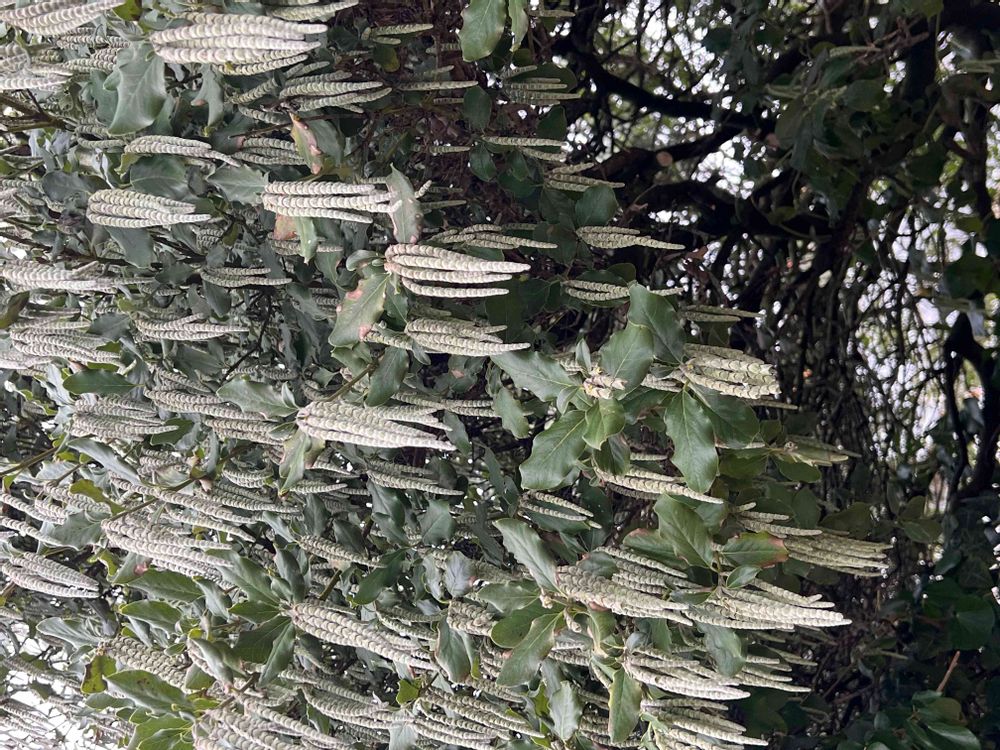 「ガリアエリプティカ」、別名「シルク タッセル ブッシュ」かな?と思います😄