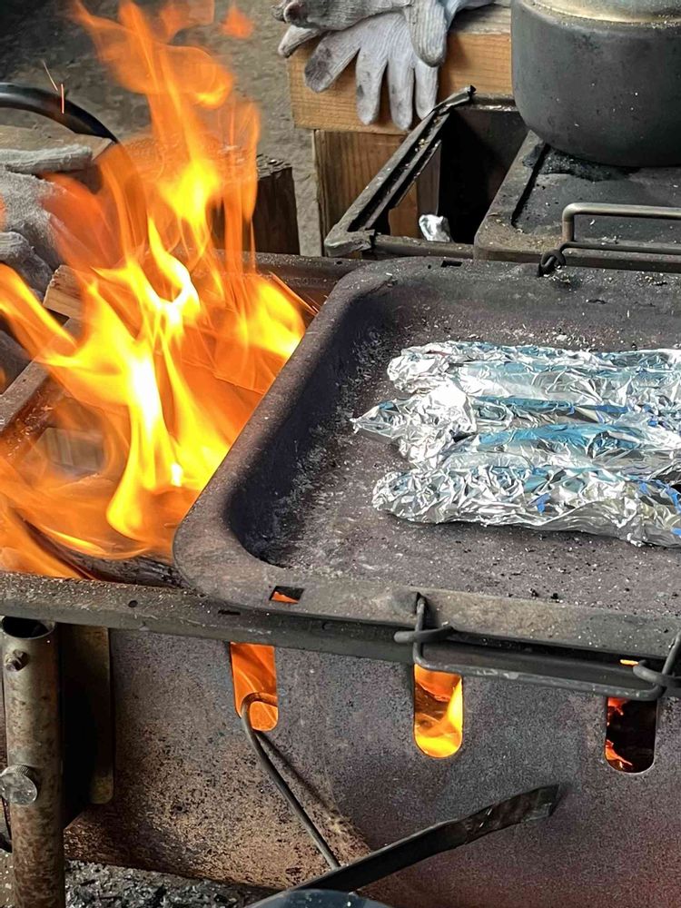 さつまいも🍠、餅、ウインナー、ミカン🍊など食べました😋