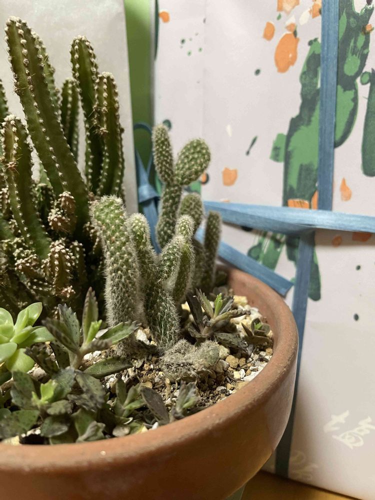 同じバニーカクタスでも、環境によってフワフワモフモフになる子もいるみたいで、うちの子はすごく刺すのでモフモフちゃんを分けてもらいました🥰