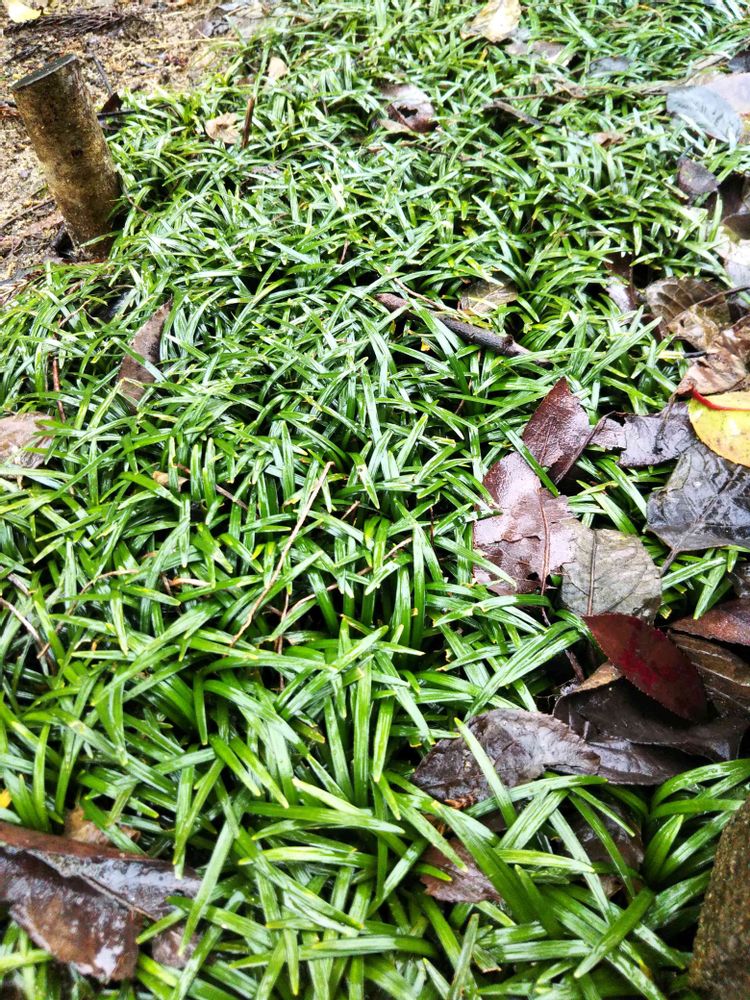 <地道投稿>花壇の「リュウノヒゲ」二株から順調に増えてきましたが、二枚目は昨年今頃の写真です⛄️。二月になりましたが雪ありません😓