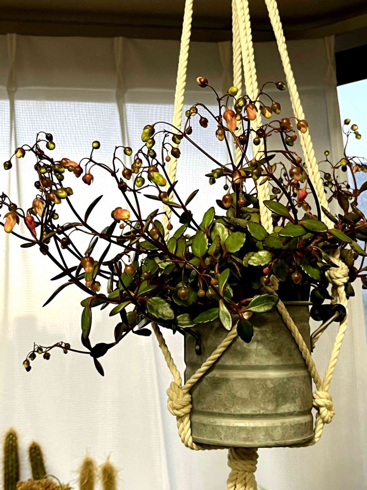 先月お迎えした紅提灯。ハンギングにしてみました。よく見ると👀✨