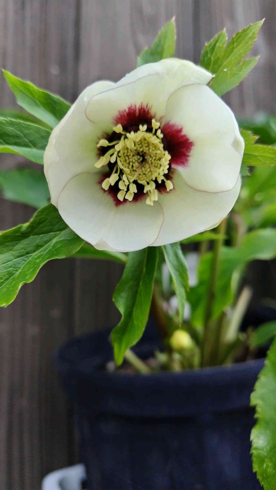 ①クリスマスローズ杉山交配のチビッ子17苗の開花3番目はホワイトフラッシュさん💕