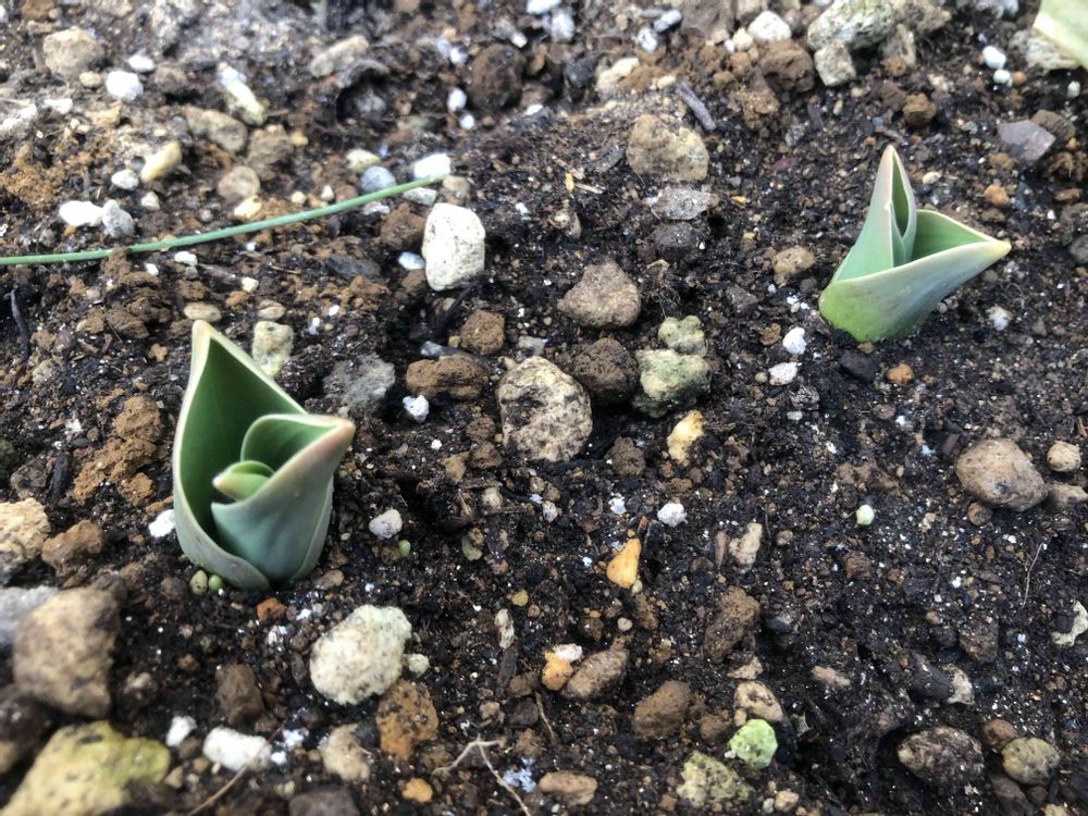 秋に植え付けたチューリップ、20球くらいあるのですが
