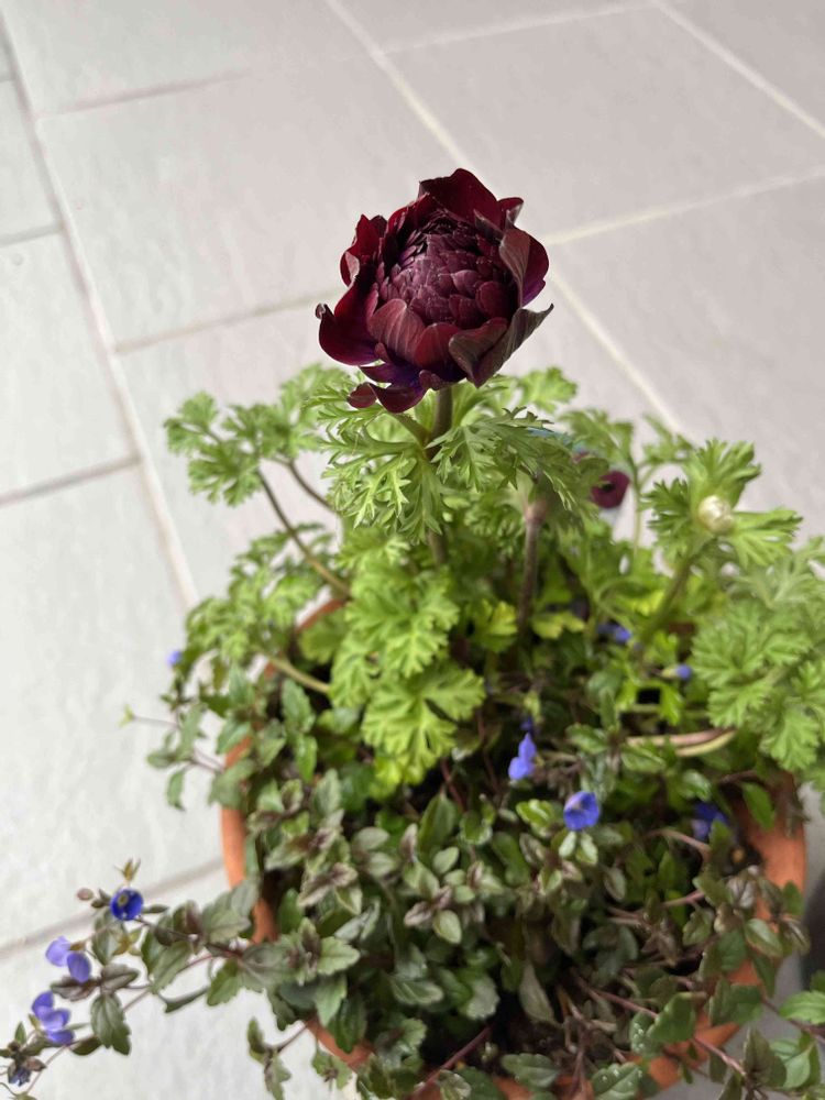 アネモネオーロラとベロニカオックスフォードブルーとの寄せ植え💙🤎