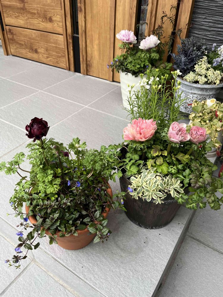 昨年アネモネの土が乾いてないのに暑さでクターってなることが多く、上手くそだてられなかったものもあったので今回は寄せ植えで早く土乾かないかな?っていう作戦です😂