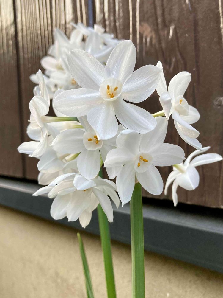 ウォーキング中にお花屋さんの前を通りかかり真っ白で美しいペーパーホワイトに出会ってしまいました。