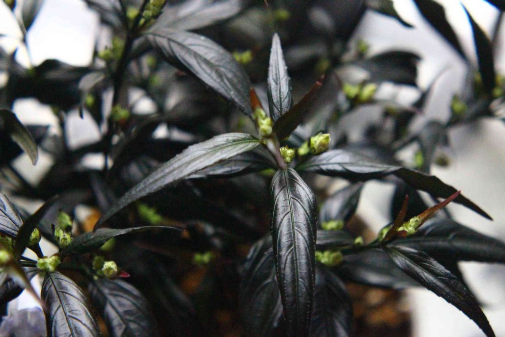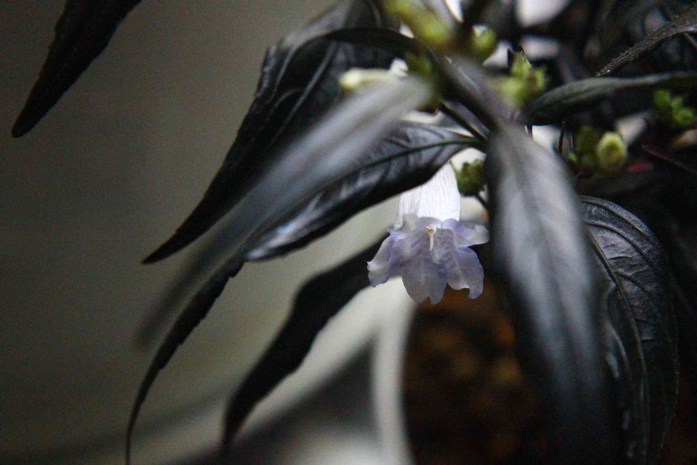 淡いパープルの花が咲き始めました。寒さに合わせることにより黒葉が美しく出るということなので、玄関内でひっそりといました。蕾がたくさんあるので満開になるのが楽しみです♡