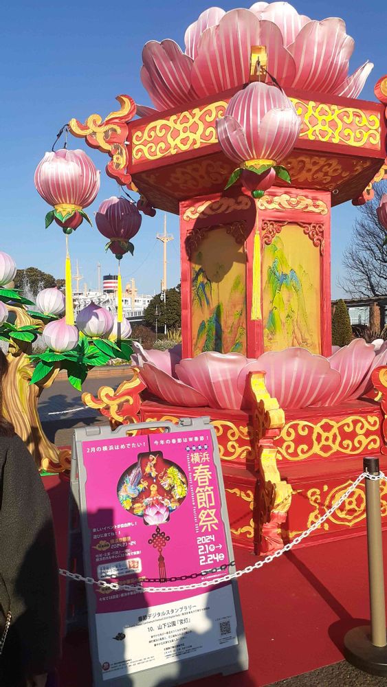 春節のためのオブジェが公園入り口に‼