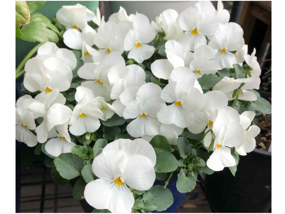 DJビオラは、今シーズンの1番始めに買ったビオラです。まだまだ暖かかったのですが、DJビオラなら徒長しないかなと思いましたが、去年の11月は暖か過ぎまして、徒長しましたね😅ばっさり切り戻したところ、いっぱい咲いてくれました😄清楚でいいですね。