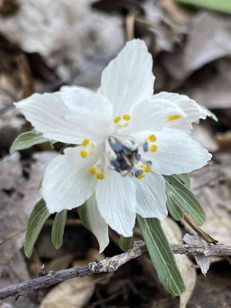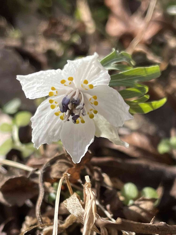 セツブンソウは茎先に1輪のお花(直径2cm位)をつけます🤍
