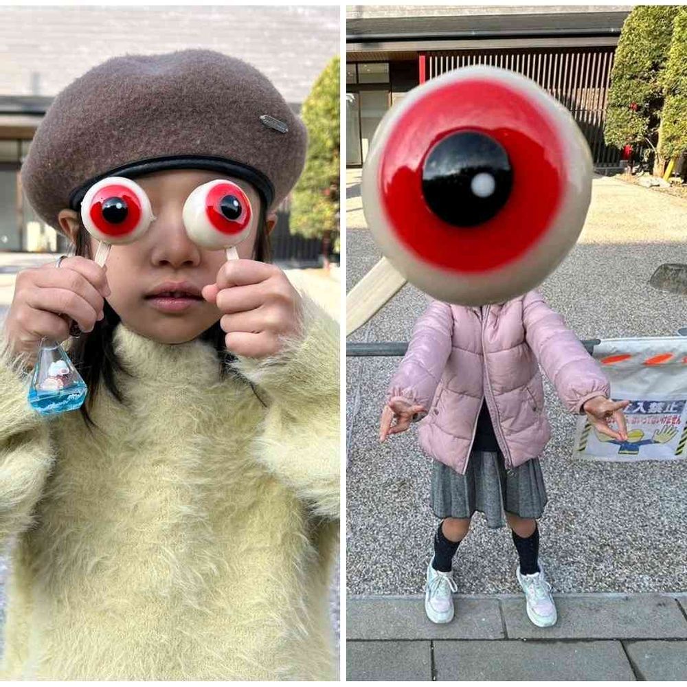 お孫ちゃんが持ってるのが、目玉まんじゅう?面白いネ🤣