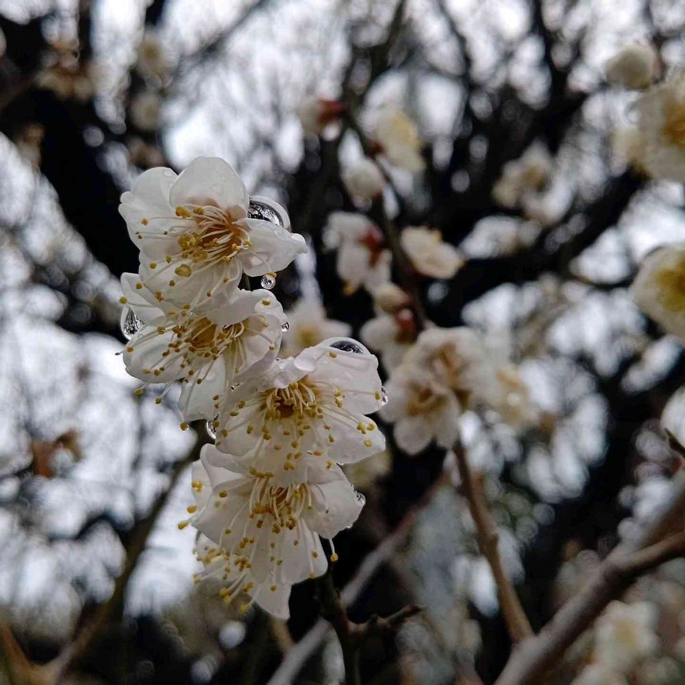 雨上がりの白梅