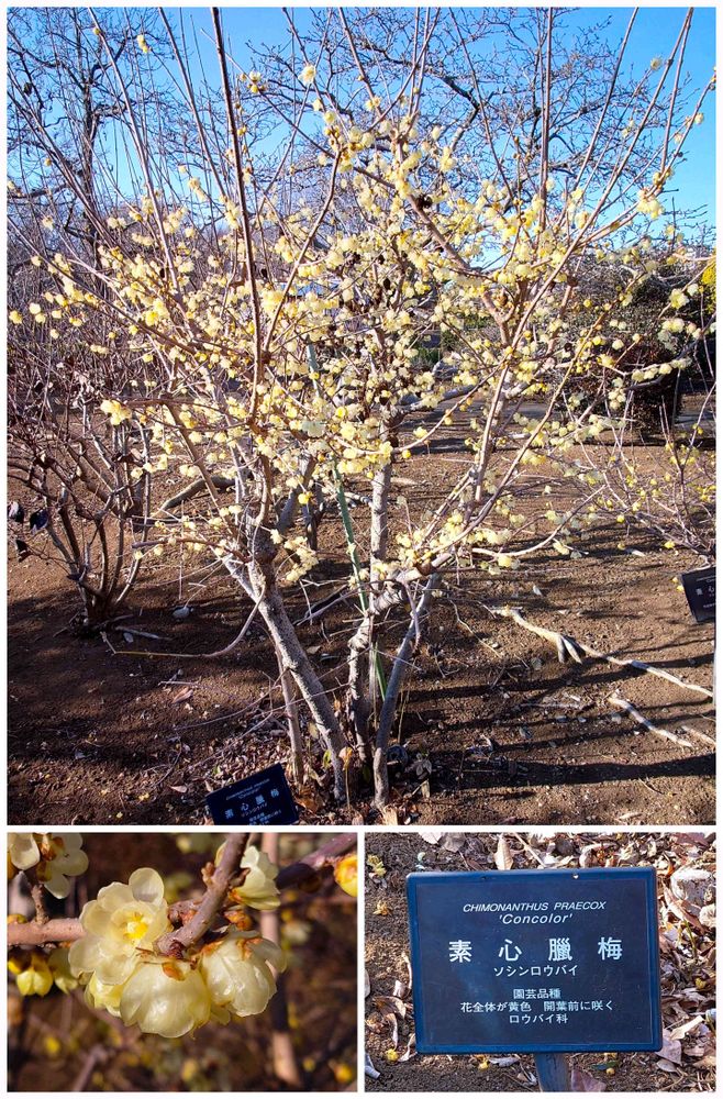 背丈ほどのロウバイ発見😀 「素心蝋梅」というんですね🧐 小さな庭にも植えられそうな大きさです🙆(農業試験場内にて)