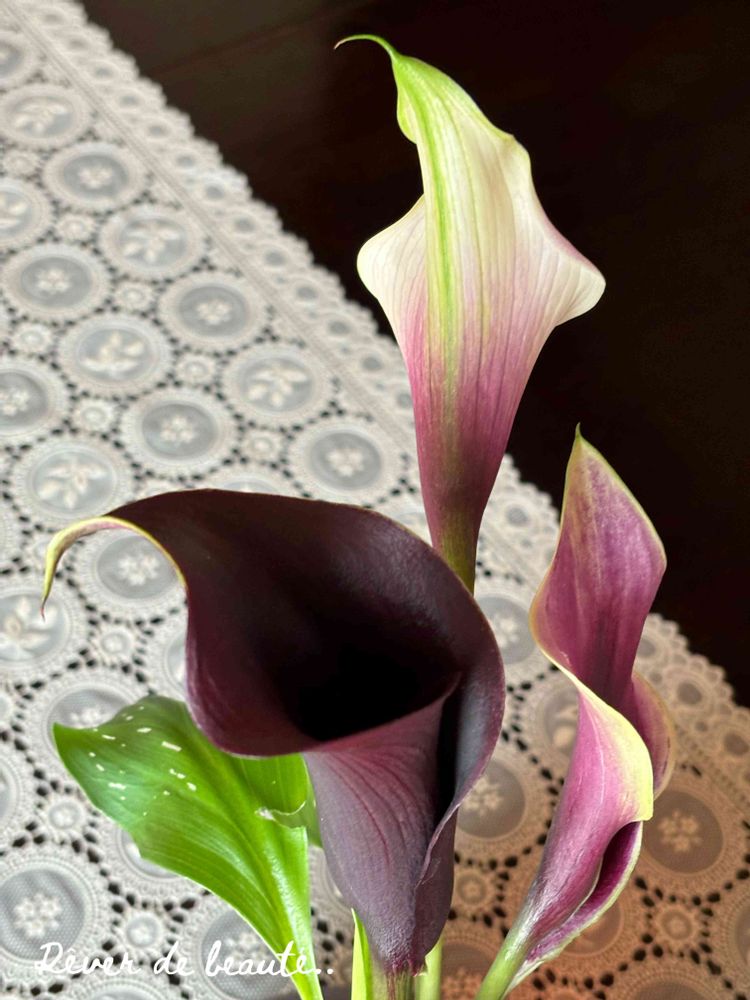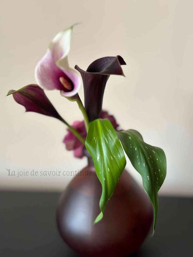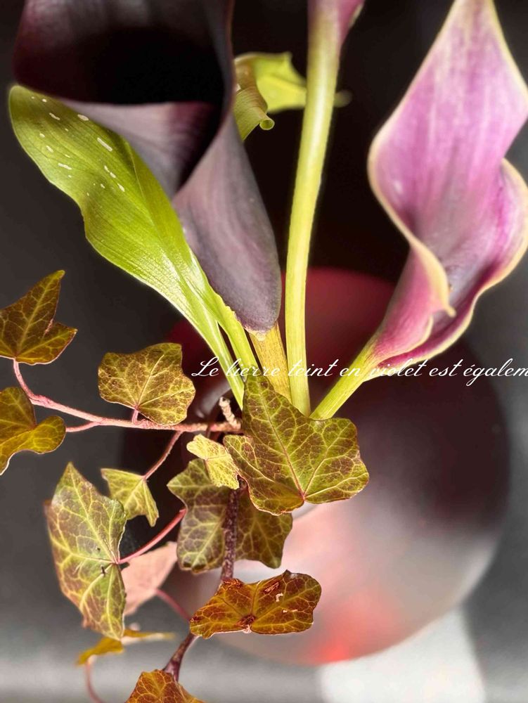 ① 飾っている𝓑面で カラーの葉っぱが美しく