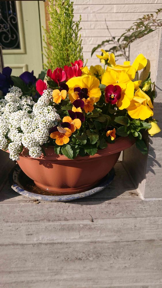 (⌒‐⌒)今日は👋😃☁️寄せ植え