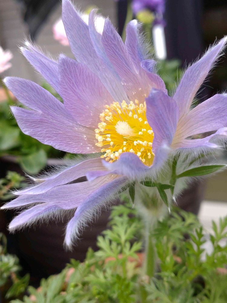 オキナグサ、この子は、咲くスイッチが入っていますね??一緒に買った赤は、咲きません。咲かなくて普通なんだけどね。💜♥️