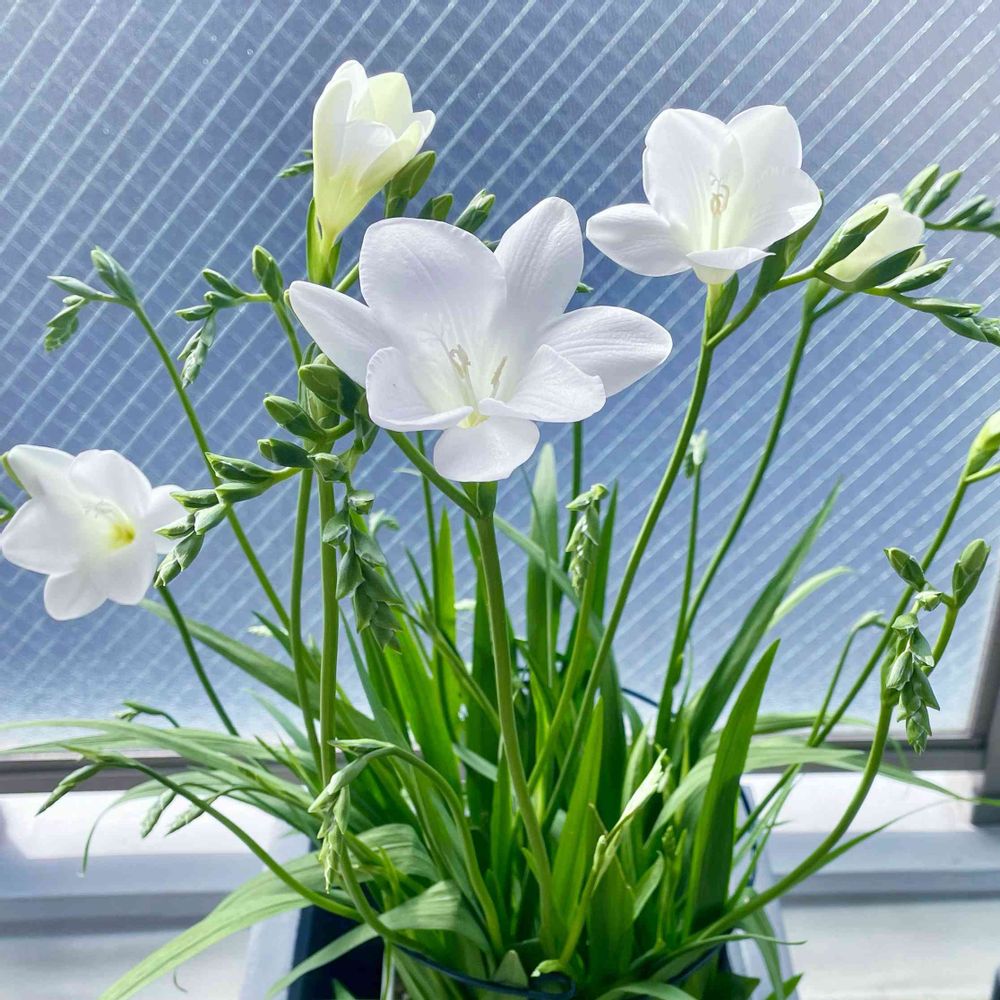 良いですね!黄色。1番香りが良いと私は思っていて♡フリージアと言えばやっぱり黄色がまず浮かびます。昔は植えっぱなしで白と混ぜて育てていたのですがある年から白しか咲かなくなり…消えてしまったようです💦そこから毎年掘り起こして育てるようになりました🤭植えっぱなしはウチみたいなプランター栽培だと、花も背丈もだんだん小振りになり…球根は増えていくから窮屈になってたのでしょうね。