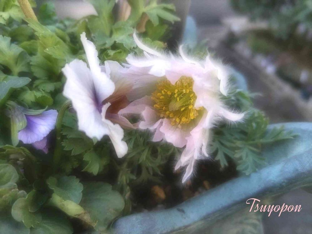つよぽんさんの西洋オキナグサ,種まきっ子ビオラ,寄せ植えの投稿画像