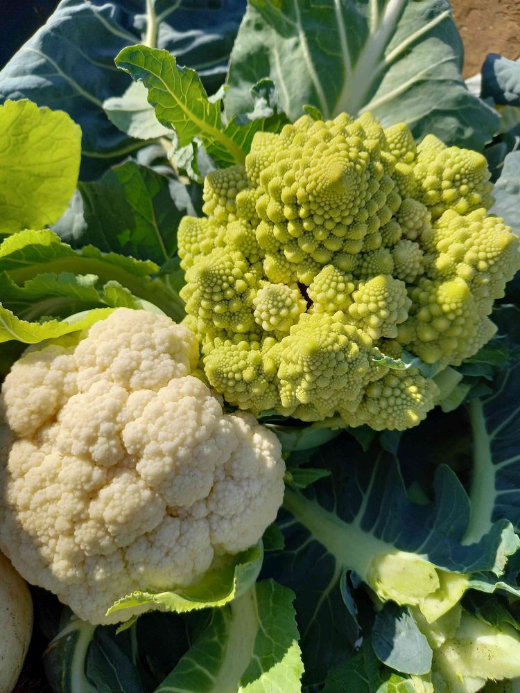 ④今日収穫したロマネスコ&カリフラワー…螺旋状に突起した円錐?