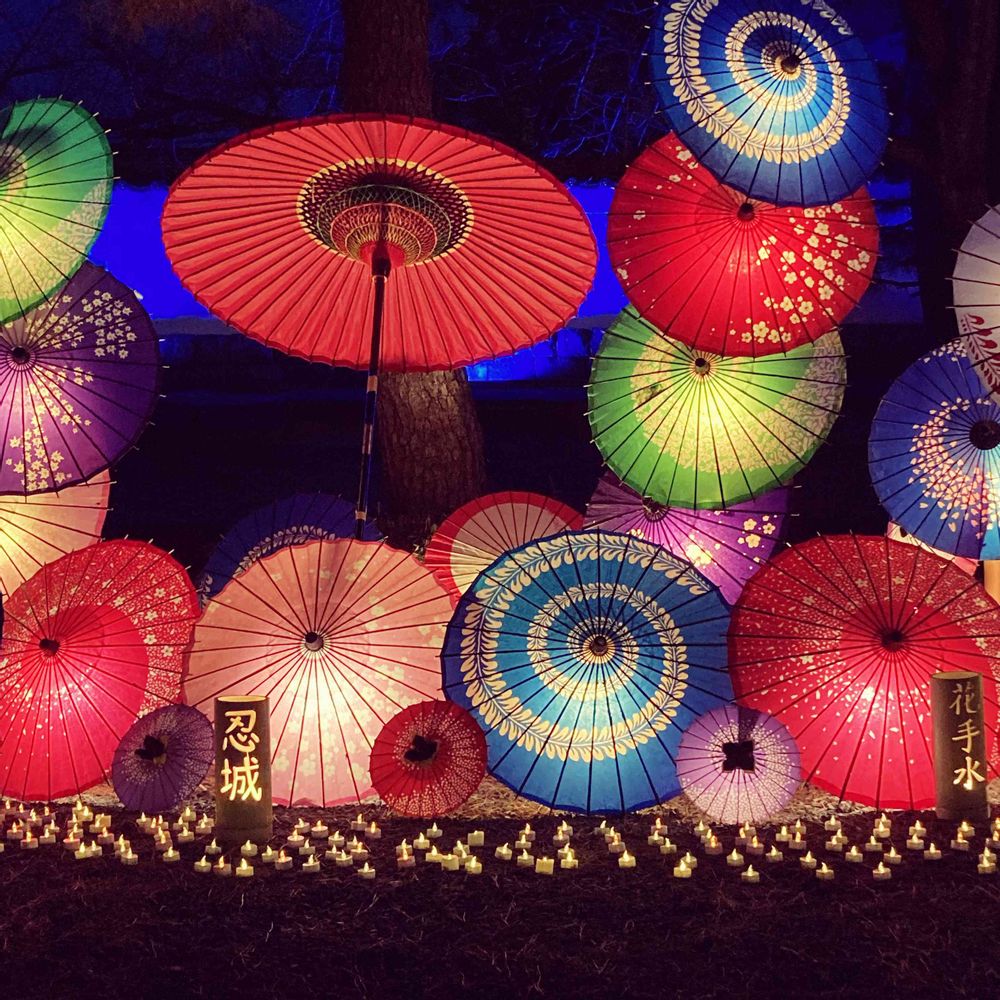 花手水はあるけど、私も傘☂️のライトアップはなかなかキレイでした✨😆