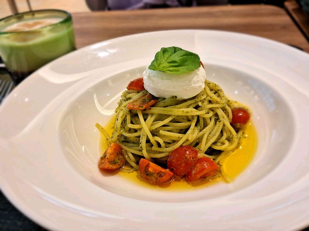 空港フードコートにもあるパスタ屋一丁目のパスタ💚