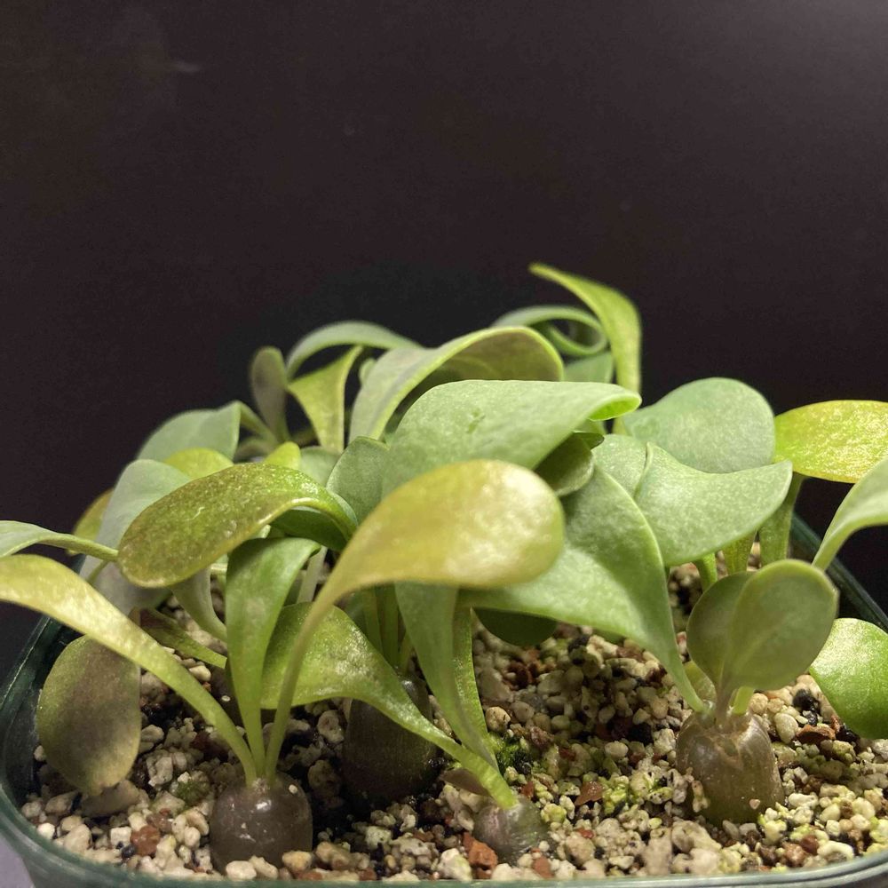 オトンナの小型塊根種 最大でも12〜14㎝ほどの大きさで塊根部は地中に埋まり成長点の近くがボコボコとしてるのが特徴