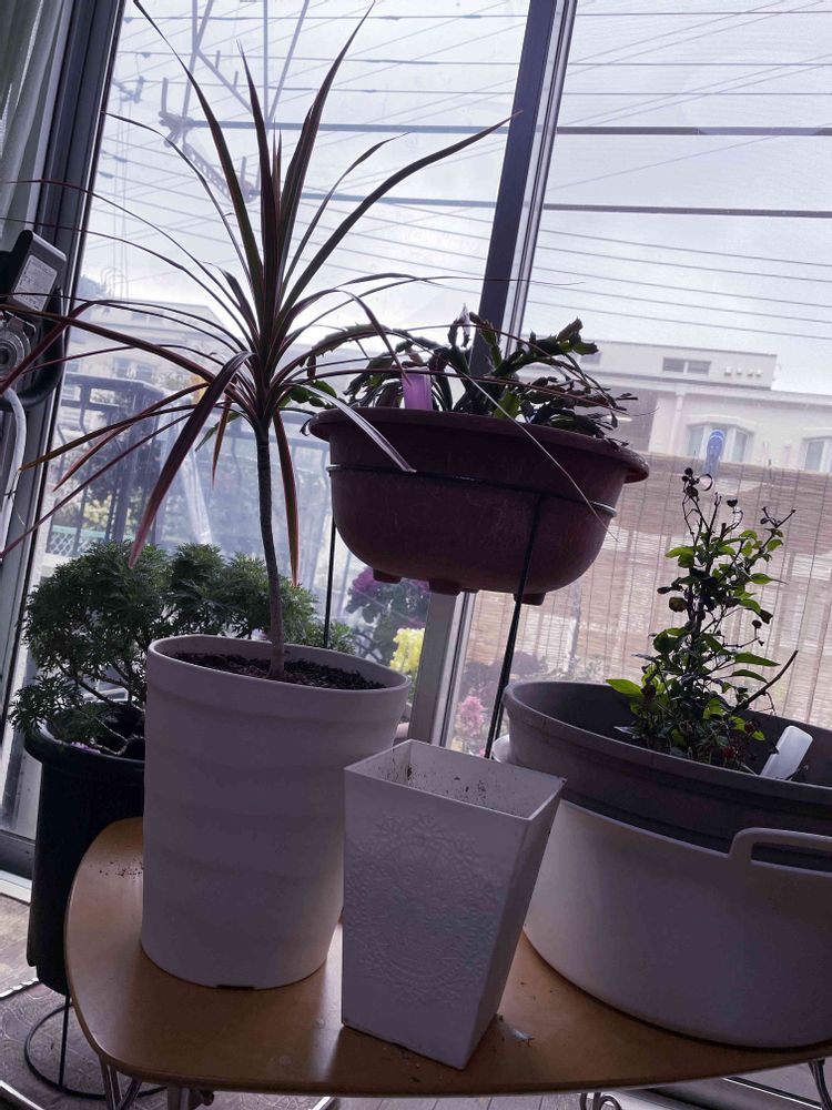 令和6年2月4日(日) ☔️ こんにちは^_^ 立春を過ぎ 昨日と違う雨降りの寒い朝。室内で防寒中のドラセナ🪴を やっと土替え鉢増し😅案の定 根っこギッチギチでした コルジリネ オーストラリス レッドスターは昨年夏⭐️に🥲