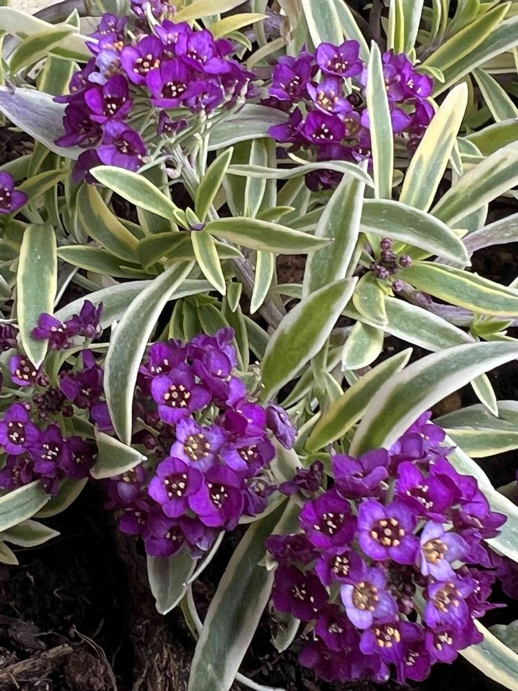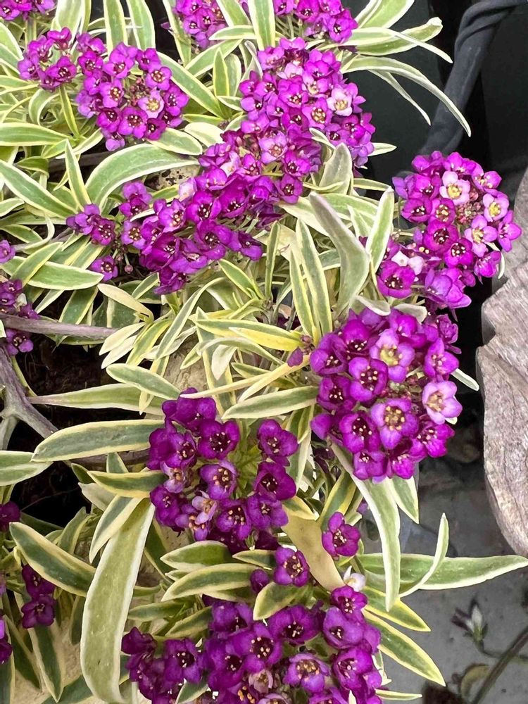 スーパーアリッサム、白しか見た事ありません。ウチのアリッサム、5年めくらいから斑入りの葉の中に緑の葉が出てくるようになって、今は緑の葉の方が元気です。