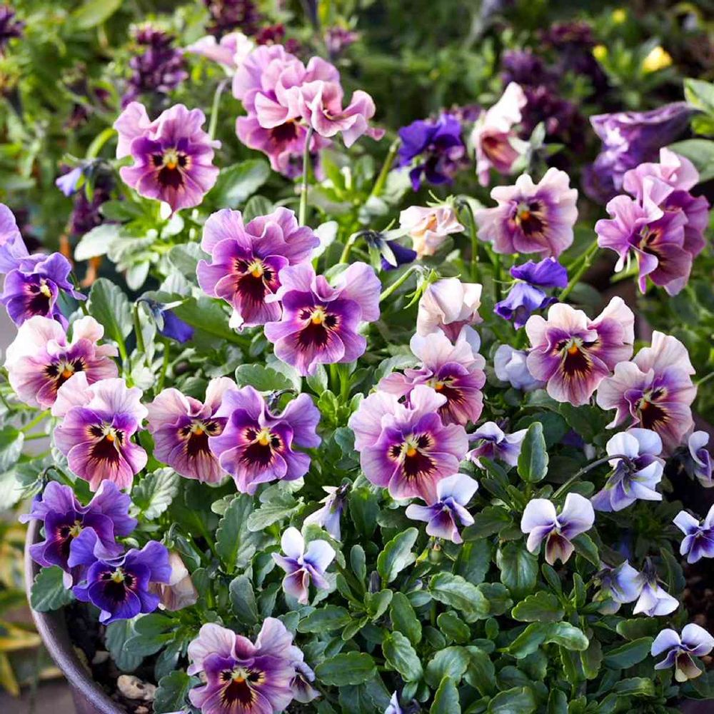 一緒に植えてある右下の小さいビオラは同じ北島園芸さんの藍月さん。