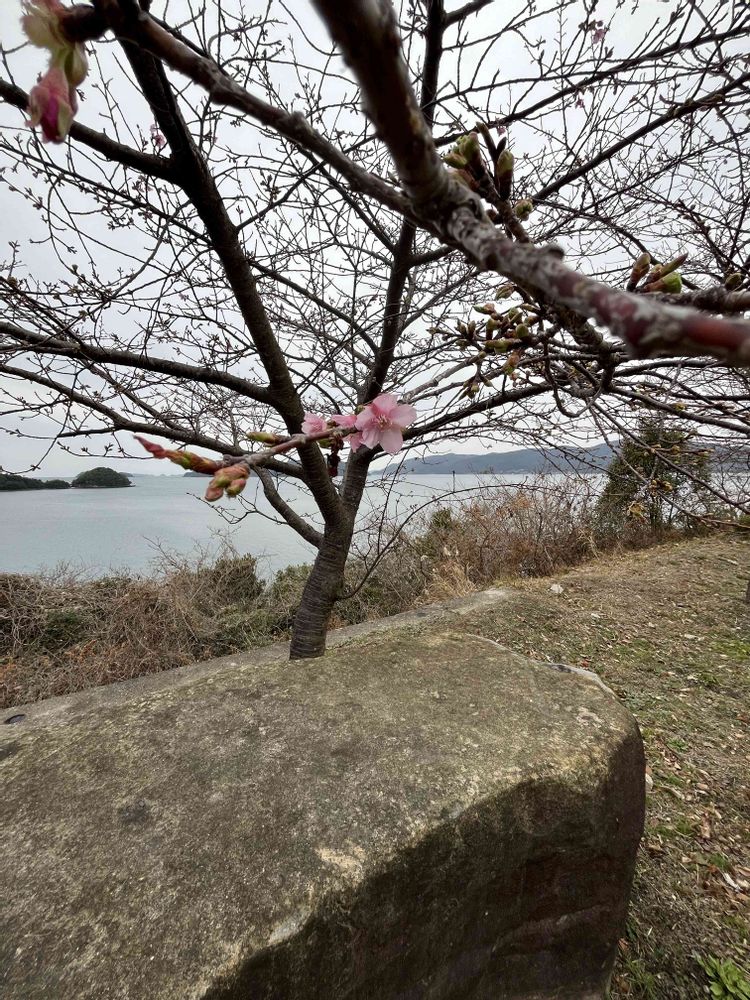 下松市の笠戸島の河津桜が咲き始めました。見頃はまだ先のよう。
