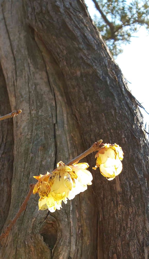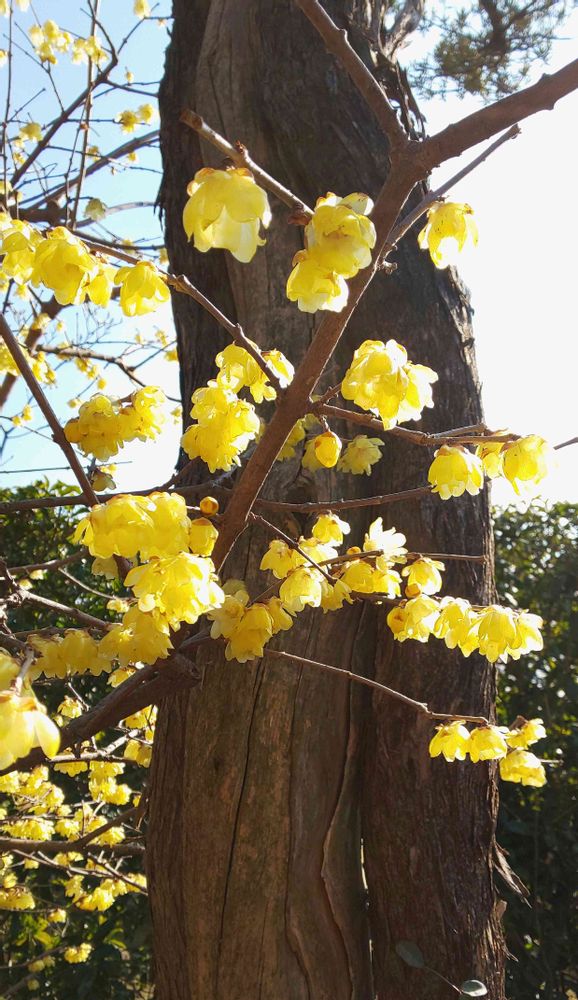蝋梅の木の生えている場所も、お花がきれいに見えるか、肝心ですね。