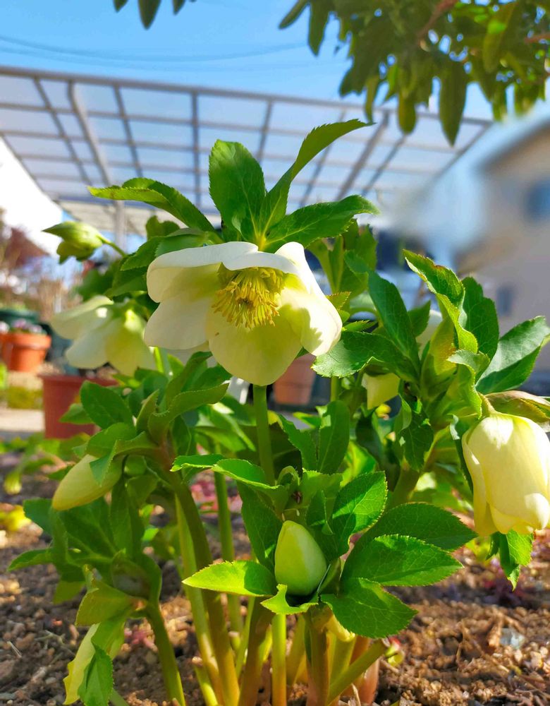我が家のクリスマスローズ、開花第一号は毎年このコです✨シンプルな一重のクリスマスローズですが、グリーンがかった白が清楚で美しいです💖小さな苗から育てたので、思い入れがあります😌✨