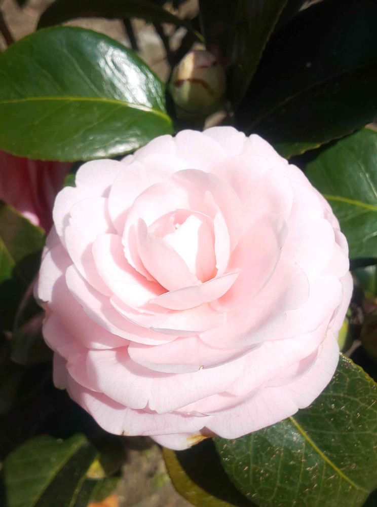 薄いピンク色のツバキの花が 小さめの木に咲いていました🪷