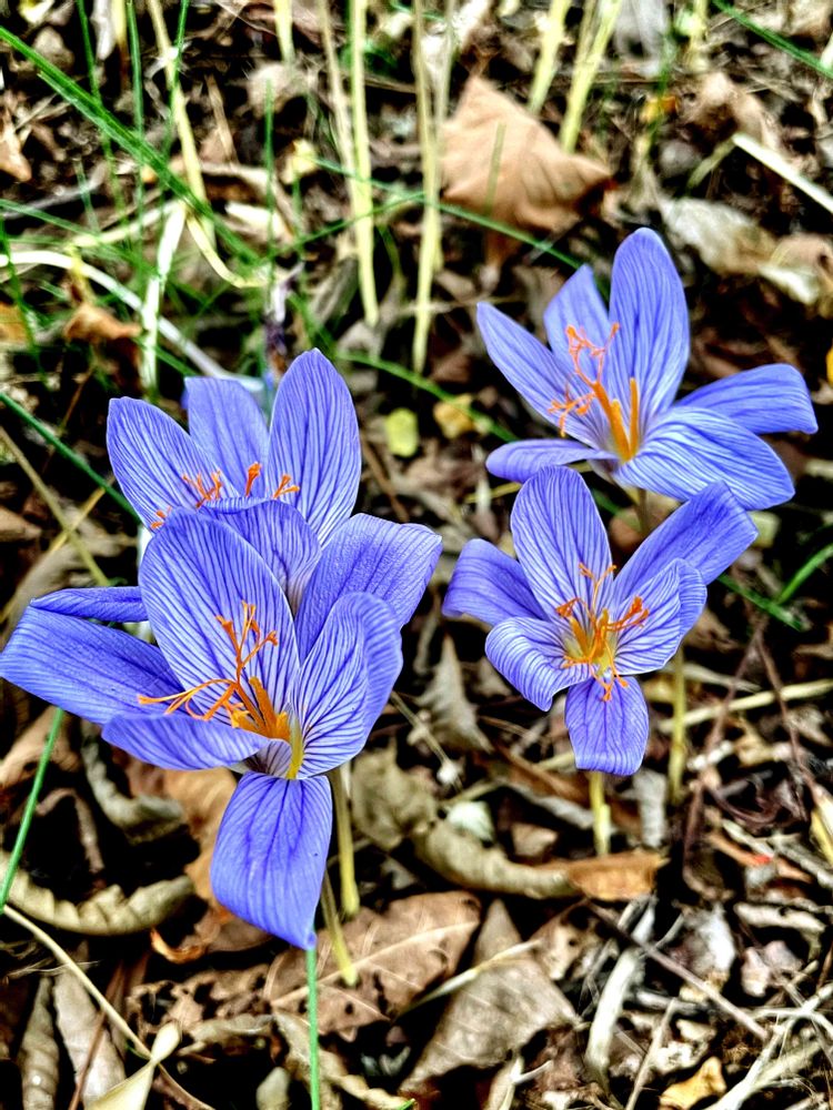 旅先での忘れられない秋咲きクロッカス💜💙、とっても素敵な光景でした…