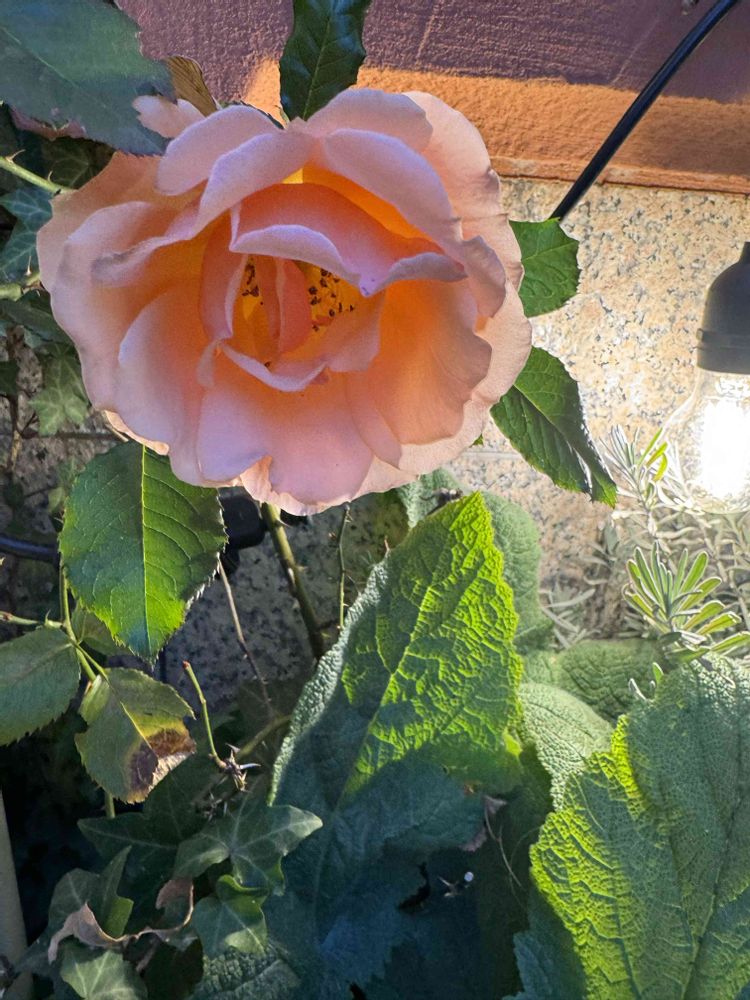 4枚目はサザンカでしょうか❓😊▶️バラ🌹さんでした❣️昨日の夕方ライト💡に染まって素敵な色になっていました✨かねーちゃん💕ありがとうございました🌹✨