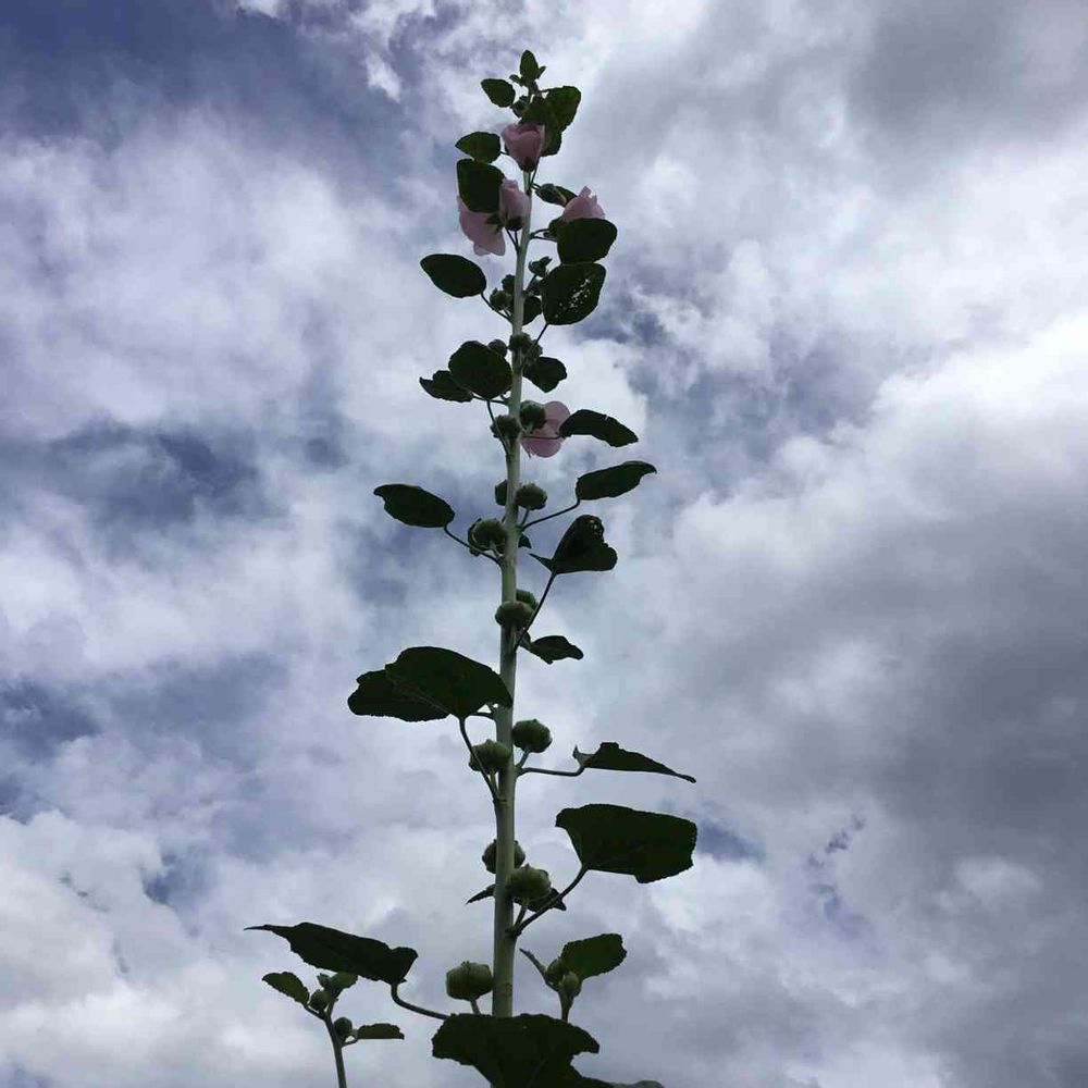 一本だけ空高くまっすぐに伸びていくタチアオイ。
